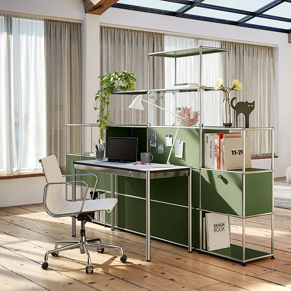 Mit dem USM Möbelbausystem kannst du jeden Raum indivduell gestalten und findest genau die Lösung, die zu dir passt – egal ob Zuhause oder im Büro.